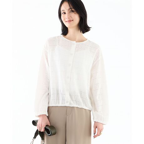 格子柄の刺しゅうが表情豊かな印象を与えるブルゾン