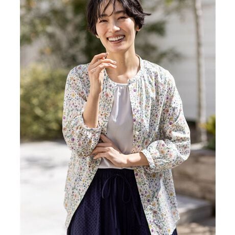 繊細に描かれたボタニカル柄がフェミニンさを演出するブラウス
