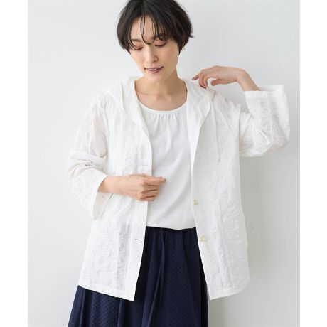 独特な凹凸感のある生地で仕立てられており、爽やかな印象を演出してくれる1着。