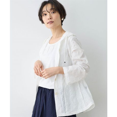 独特な凹凸感のある生地で仕立てられており、爽やかな印象を演出してくれる1着。