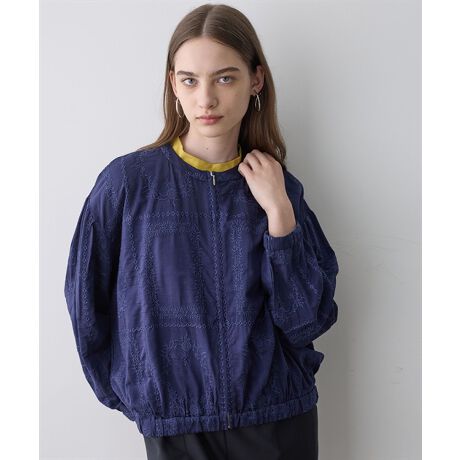 スタイリングにやわらかい印象を与える総レースブルゾン