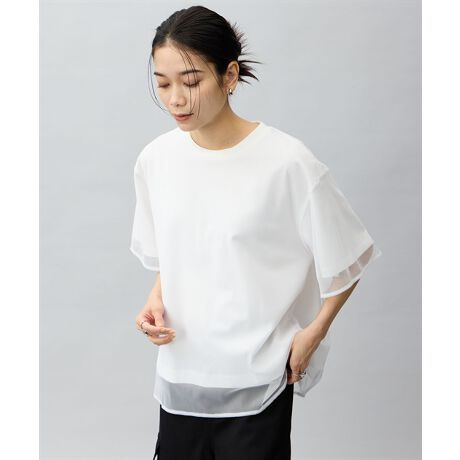 透け感のあるチュール素材をレイヤードしたTシャツ