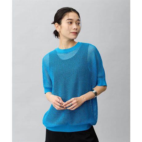透け感のあるメッシュ素材が涼しげな印象を与えるプルオーバー