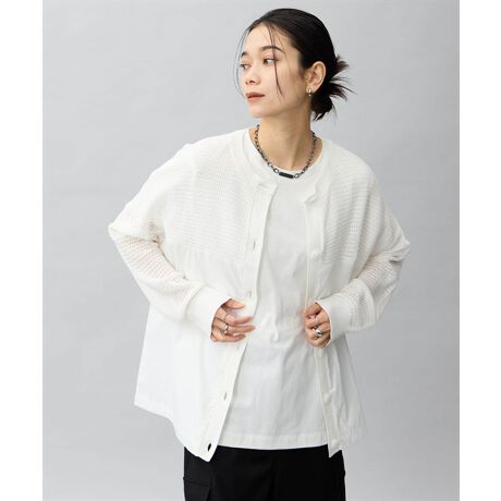 表情の変化を楽しめる異素材ドッキングのカーディガン