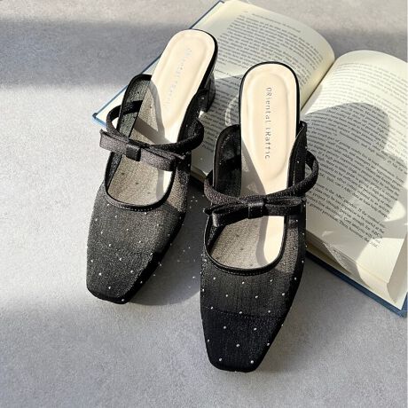 透け感が大人可愛い リボンベルトラインストーンシアー ミュール / 51124