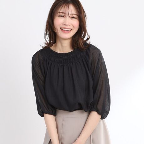 シャーリングデザインの幅にこだわった上品で大人っぽさのあるブラウス。