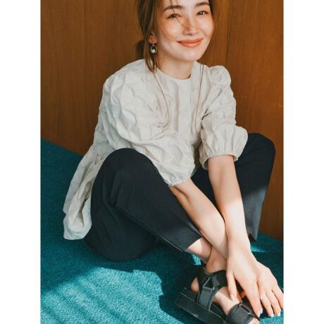 ・一枚で華やかなので、シンプルなテーパードパンツやタイトスカートはもちろん、デニムなどを合わせたカジュアルな着こなしもオススメです。