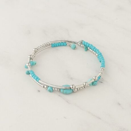 2連のビーズワイヤーブレスレットは、夏の装いにぴったりなアクセサリーです。