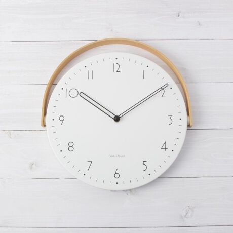 幾何学的な文字盤に、木のベルトで北欧モダンな印象に。