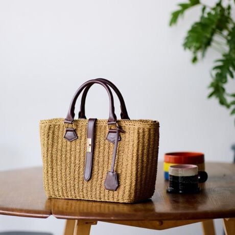 お出かけにもオールマイティーにお使いいただける上品で大人っぽさのある雑材バッグです。