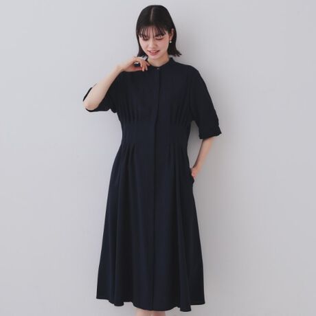 ピンタックフィット&フレアワンピース【洗濯機洗い可】