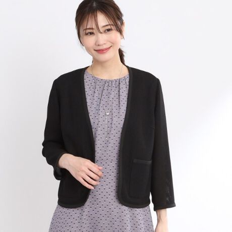 涼しげなカラミ素材をパイピングで軽く仕上げた夏のジャケット。