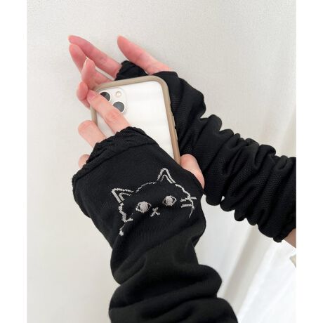 猫モチーフがかわいい、ひんやり快適&UV対策もばっちりなロング丈アームカバー。