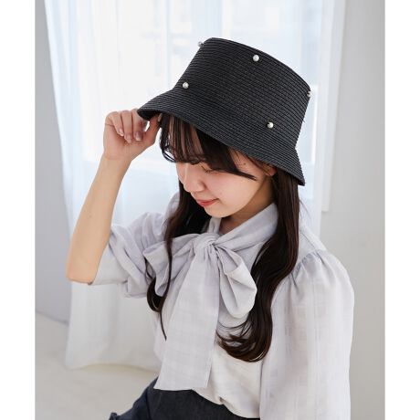 通気性の良いペーパー素材にきらめくパールを添えた、涼しげで上品なハット。