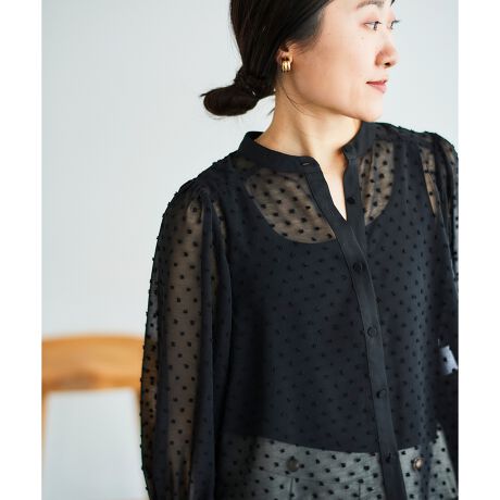 透け感たっぷりな軽やかなシアー素材とドット柄が魅力のブラウス。