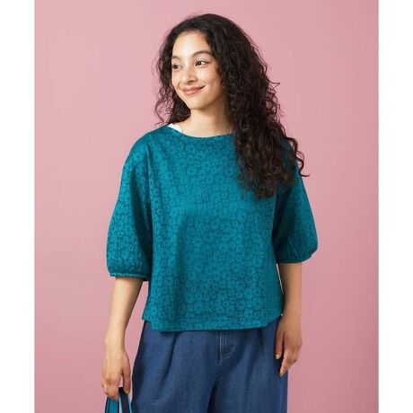 シアー感がある花柄のカットソープルオーバー。全体的にゆったりした着心地の良いシルエットです。ボートネックで首元がすっきりした印象に。袖に丸みをもたせたデザインで、女性らしい着こなしを叶えつつ楽な着用感を実現しました。着合わせしやすいシンプルでコンパクトな丈感も魅力。花柄は単色で編まれているため無地のようにも見え、普段のコーディネート取り入れやすいアイテムです。