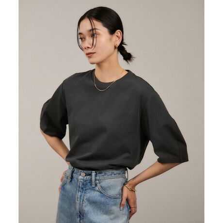 二の腕をカバーする袖丈など、シンプルな中にも日常に取り入れやすいデザインが詰まっている大人のためのTシャツです。