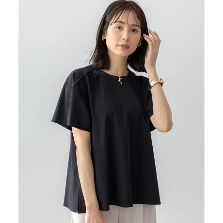 ■デザイン・腕を華奢に見せてくれるボリューム感のあるフレアラグランスリーブ。・ラグラン切り替えにパイピングとギャザーを施したこだわりのデザイン。・アウトで着用しても決まるスリットや前後差のある裾仕様。
