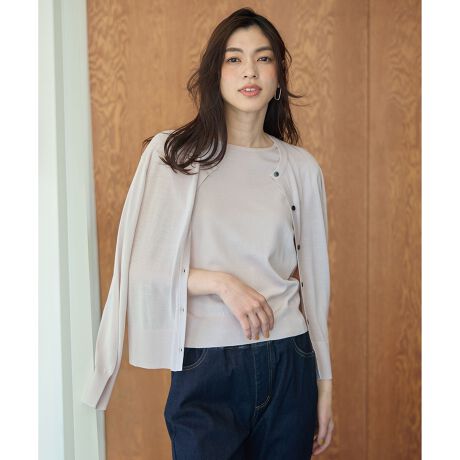 ・カジュアルなデニムからキレイめのスカートまで幅広く合わせられる・カーディガンはボタンを留めた一枚着風の着こなしから、さっと羽織ったラフな装いも◎