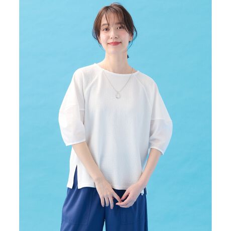 素材 ・表面感のあるサッカー素材を使用・肌に張り付きにくく、ドライな肌触りが特徴