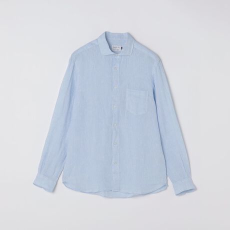 リネン100%で仕立てたセミワイドカラーシャツ。