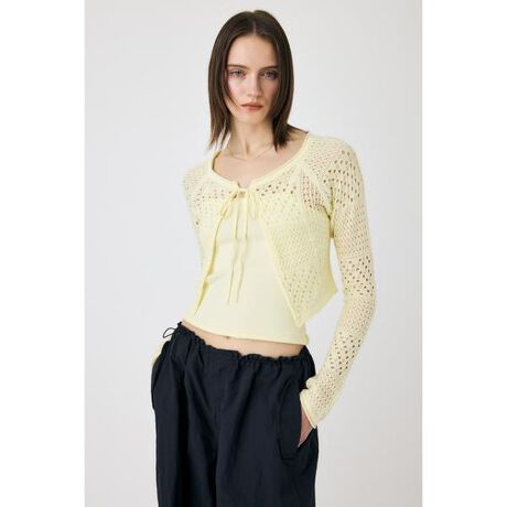 【OPENWORK KNIT ENSEMBLE / オープンワークニットアンサンブル】■ポイント透かし柄編みがキャッチーなニットカーディガンと、キャミソールのアンサンブル。■ディテールカーディガンはフロントリボンでラフに羽織っていただけるデザイン。■スタイリングカーディガンは、アンサンブルだけでなく単品としてワンピースやお持ちのトップスに羽織っていただくのもおすすめです。■生地透け感:やや有(ニット編み柄部分)裏地:無伸縮性:無光沢感:無■商品のお気に入り登録お気に入りアイテムの再入荷・在庫1点などの通知を受け取ることができます。■ブランドのお気に入り登録新作アイテムの入荷や人気アイテムの再入荷、おすすめトピックスなど、いち早くブランドの情報を受け取ることができます。[注意事項]※画像の商品はサンプルです。実際の商品と仕様、加工が若干異なる場合があります。※画像の商品は光の照射や角度、お使いのモニター環境により、実物と色味が異なる場合がございます。※着用、お取り扱いの際は、アテンションタグをご確認ください。