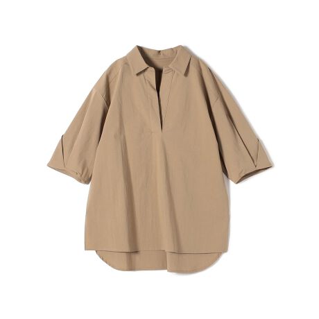 袖のタックとスキッパーのデザインがポイントで、シンプルながらも女性らしい着こなしが叶う1枚。