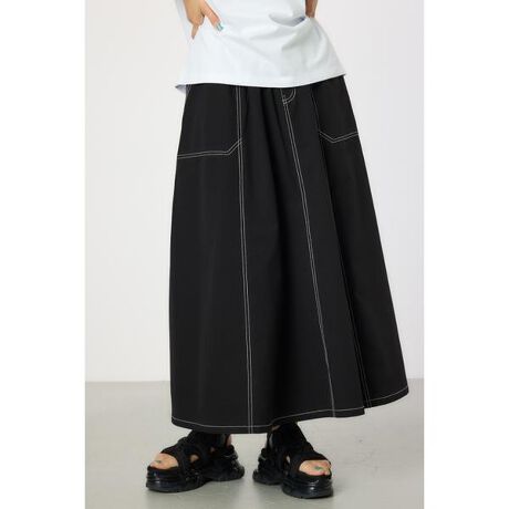■ポイント配色ステッチがポイントのフレアスカート。撥水加工の素材を使用しているので、雨の日にも濡れず、汚れなども付きにくいのが嬉しいポイント。■ディティール8枚接ぎで適度なフレアシルエットに仕上げており、体型カバーにもぴったりです。ウエストにはゴムで、内側にはスピンドルを通してあるので、ウエスト回りのサイズ調節が可能なラクチンで万能なスカートです。■スタイリングロゴTシャツやベーシックなロンTと合わせて、大人のきれいめカジュアルにマッチします。■生地軽量でストレッチ性のある撥水加工のポリエステル素材を使用しています。■透け感:なし■光沢感:なし■伸縮性:あり■裏 地:なし[注意事項]※画像の商品はサンプルです。実際の商品と仕様、加工が若干異なる場合があります。※画像の商品は光の照射や角度、お使いのモニター環境により、実物と色味が異なる場合がございます。※着用、お取り扱いの際は、アテンションタグをご確認ください。