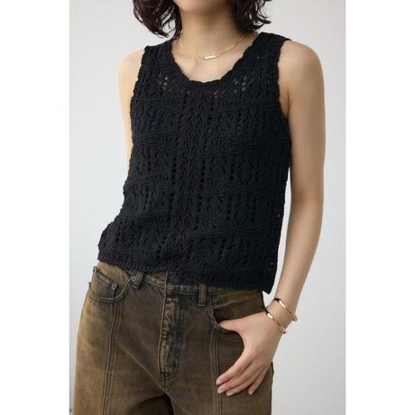 ■クロシェニットタンク■ポイントクロシェ編みのタンクトップです。■ディティール繊細なクロシェ編みを使用した女性らしいタンクトップです。トレンドのシアー感のあるディティールがポイントです。清涼感たっぷりの柔らかいコットンタッチの素材を使用しており、程よいタイト感でデイリー使いにピッタリです。■スタイリングデニム合わせでも女性らしさを演出してくれます。■生地ナチュラル感のあるニット素材。透け感:あり裏 地:なし伸縮性:なし光沢感:なし[注意事項]※画像の商品はサンプルです。実際の商品と仕様、加工が若干異なる場合があります。※画像の商品は光の照射や角度、お使いのモニター環境により、実物と色味が異なる場合がございます。※着用、お取り扱いの際は、アテンションタグをご確認ください。