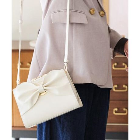 ドレープリボンレザーショルダーバッグ