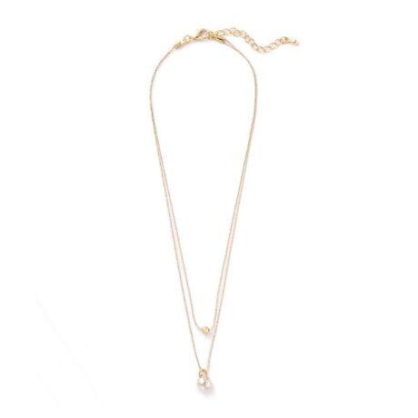 華奢なチェーンのトップに異なるパーツを使った2連ネックレス。ほどよい存在感のボールパーツやレイヤードしたような2連デザインがポイント。ツヤめき感のあるゴールドカラーが女性らしく、オンにもオフシーンにも使いやすいシーズンレスなアクセサリーです。