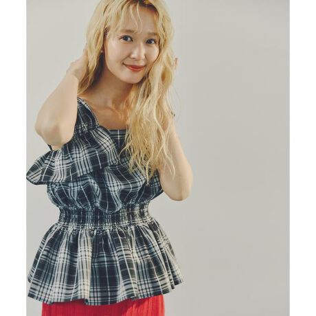 チェックペプラムブラウス