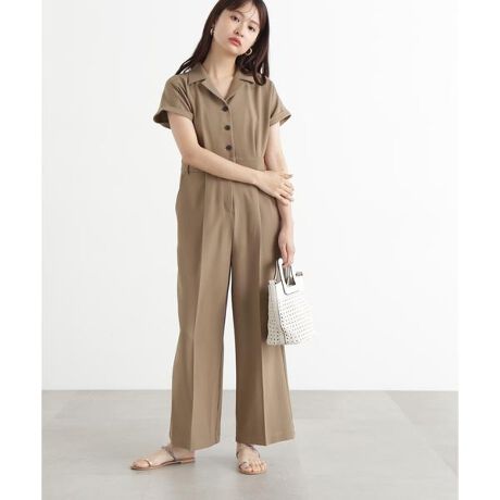 着るだけでスタイリングが決まる手軽さがありながら、きちんと見えも叶えてくれるオールインワン。袖はフレンチスリーブで柔らかい印象に仕上げています。開襟デザインやタックから続くセンタープレスが入っているシルエットで単調にならずに着ていただけます。<素材>ドライタッチで清涼感のある素材を使用。程よい微ストレッチ性によりストレスフリーな着心地です。<詳細>仕様・前ボタン&ファスナー裏地・なし透け感・なし / 光沢・なし / 伸縮性・ややあり生地の厚さ・普通※モデルの着用画像の場合、光の当たり具合により、実際の色味と異なって見えることがございます。色味は、商品単体の画像をご参照ください。