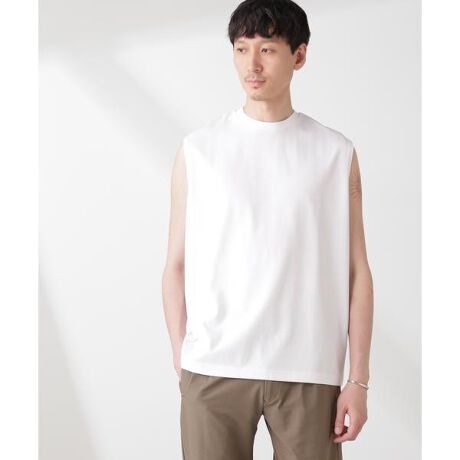 程よいゆとりを演出した清潔感のある仕上がりのノースリーブ。インナーとしてはもちろん、1枚着としてスラックスと合わせるなどモードな雰囲気を演出するのもおすすめ。
