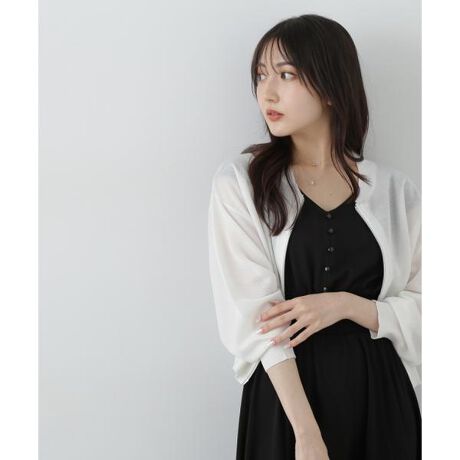 透け感とほどよい厚みのあるシアーニットブルゾン。フロントは逆開ファスナーで開き具合の調節ができます。ロンTやキャミソール合わせもフェミニンな印象で着こなせます。