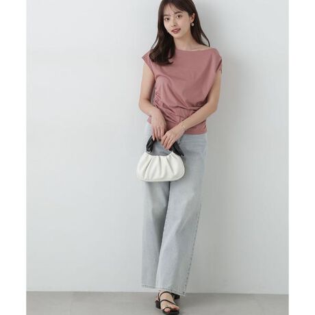 左右の肩まわりでアシンメトリーにタックを取り、デコルテラインのさりげない肌見せで大人ヘルシーに着られるTシャツ。サイドにギャザーを寄せたり、アシンメトリーなデザインで華やかさを演出。カットソーなので着心地が良く、スカートにもパンツにも着回せます。