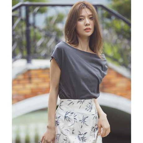 左右の肩まわりでアシンメトリーにタックを取り、デコルテラインのさりげない肌見せで大人ヘルシーに着られるTシャツ。サイドにギャザーを寄せたり、アシンメトリーなデザインで華やかさを演出。カットソーなので着心地が良く、スカートにもパンツにも着回せます。