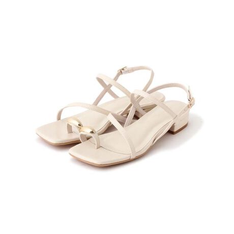 オシャレに見せてくれるゴールドカラーモチーフ付きトングサンダル。抜け感のあるストラップデザインと、親指部分に付けているきらっとモチーフが大人ポイントです。スクエアトゥ、低めのヒールで安定感のある履き心地も嬉しい。春夏スタイルの足元にぴったりな1足です。※モデルの着用画像の場合、光の当たり具合により、実際の色味と異なって見えることがございます。色味は、商品単体の画像をご参照ください。