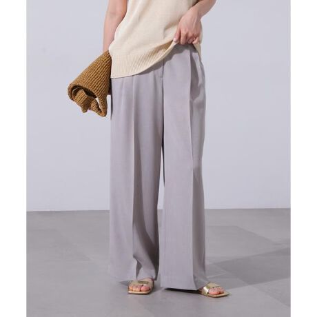 ツータックで腰まわりをカバーしながら着られるワイドパンツ。タックから続くセンタープレス入りで、きちんと見えするキレイなシルエットを演出します。シンプルなデザインなので、シャツブラウス・ニットプルオーバー・カットソーまで合わせられるので1本あるとコーディネートの幅が広がります。<素材>メランジ調のツイル生地を使用しています。<詳細>仕様・前ファスナー裏地・なし透け感・なし / 光沢・なし / 伸縮性・なし生地の厚さ・普通※モデルの着用画像の場合、光の当たり具合により、実際の色味と異なって見えることがございます。色味は、商品単体の画像をご参照ください。