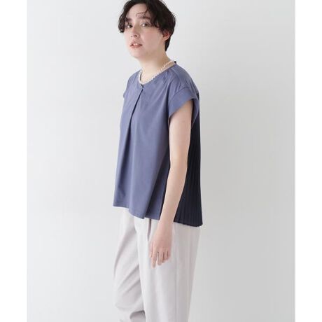 後ろ身頃ヨーク下に繊細なアコーディオンプリーツをドッキングした、フレンチスリーブVネックプルオーバーです。