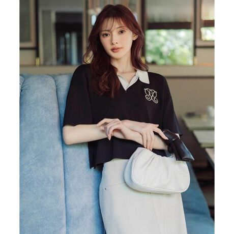トレンドの襟付きラガーニットは、半袖にして二の腕をカバーしながら抜け感もプラス。ラメ糸を使った刺しゅうがアクセントになり、カジュアルすぎず女性らしい印象に見せてくれます。デニムパンツやフレアスカートと相性抜群です。