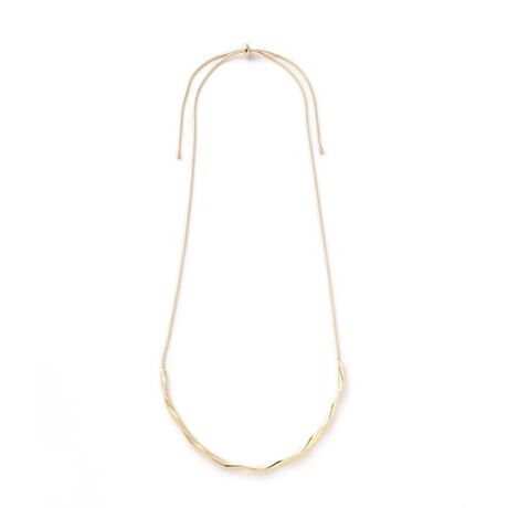 ウェーブラインが洗練された雰囲気を叶えるネックレス。後ろネックの左右のチェーン先を動かすと長さ調整ができ、コーディネートに合わせて付けられます。ツヤめき感のあるゴールドカラーが女性らしく、オンにもオフシーンにも使いやすいシーズンレスなアクセサリーです。