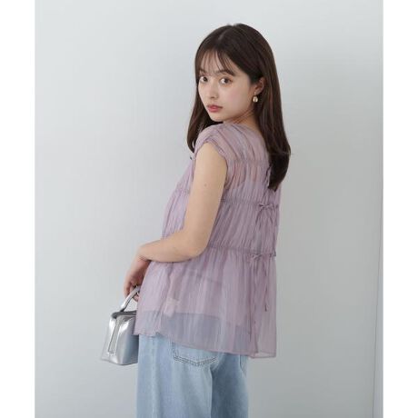 ブラウスはツヤ感のあるシアー素材を使用。インナーキャミソールはさらっとしたカットソー素材を使用しています。