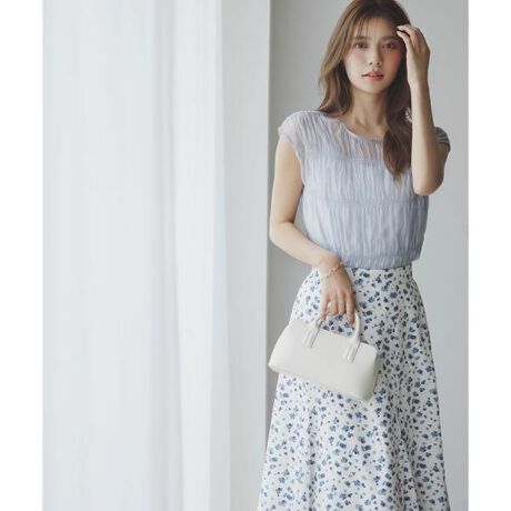 ブラウスはツヤ感のあるシアー素材を使用。インナーキャミソールはさらっとしたカットソー素材を使用しています。