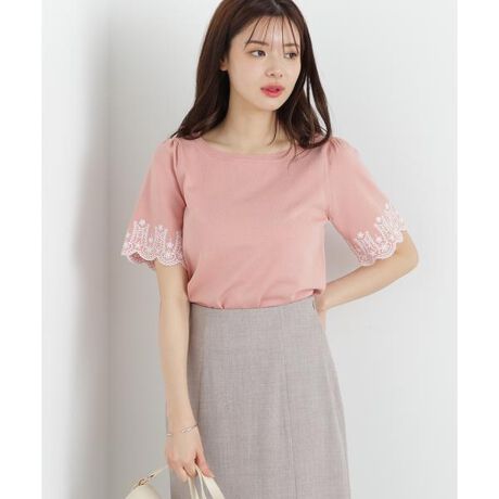 袖の刺繍がかわいいニットですが、刺繍部分がゴワついてチクチクするところだけが難点です。ピンクとありますが淡いオレンジ色でした。