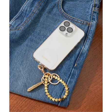 スマホをポケットやバッグに入れたときにストラップ部分を外に出せば、チャームのように見えておしゃれ。