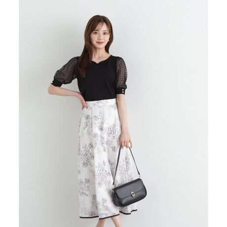 線画タッチのフラワーモチーフを重ねて奥行きを出した、PROPORTIONオリジナル図案の花柄フレアスカートです。裾はテープを叩いてふんわりと広がるシルエットにし、少しシアーな素材を使って軽やかさをプラス。後ろウエストはゴム仕様ではき心地良くフィットします。