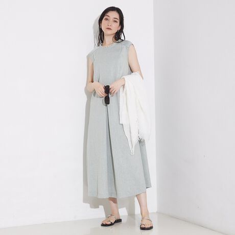 [型番:32500090004]*Detail*定番人気のリネンライク素材を使用したフロントタックワンピース。たっぷりと入ったタックで立体感を持たせ、スッキリとしたシルエットに。襟ぐりのフリンジが程よい抜け感を演出し、カジュアルさをプラス。*Coordinate*一枚でさらりと着てもサマになる、計算されたシルエット。スニーカー合わせで抜け感を出したり、ヒールで上品にも。アクセやバッグでニュアンスを足せば、オンにもオフにも活躍。中国製