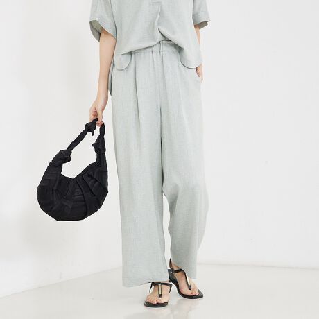 定番のリネンライク素材を使用した、清涼感あふれるワイドイージーパンツ。