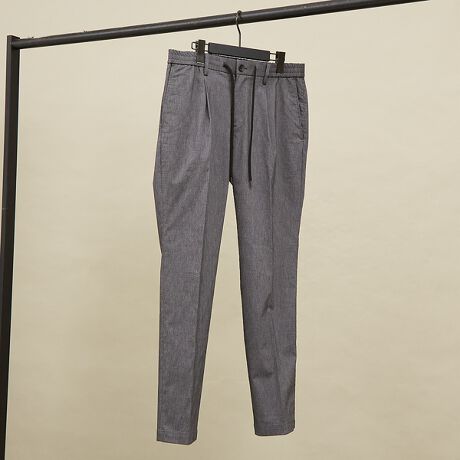 1プリーツのイージースラックス。上質な素材感と織柄をしっかり感じられる合わせやすいスラックスです。